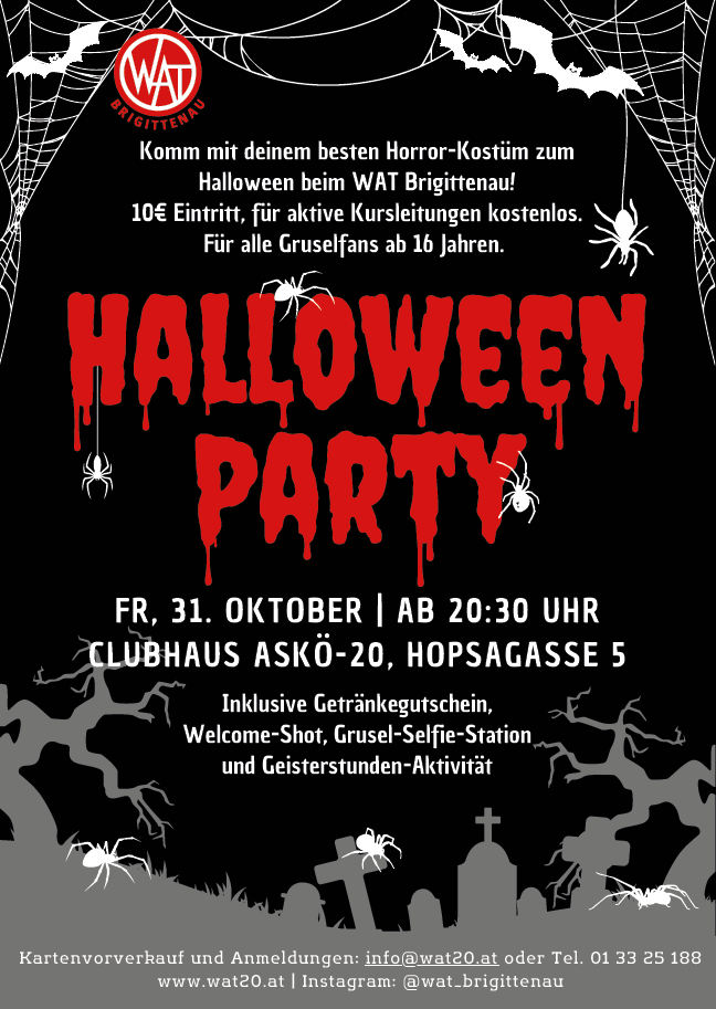 Komm mit deinem besten Horror-Kostüm zum Halloween beim WAT Brigittenau!