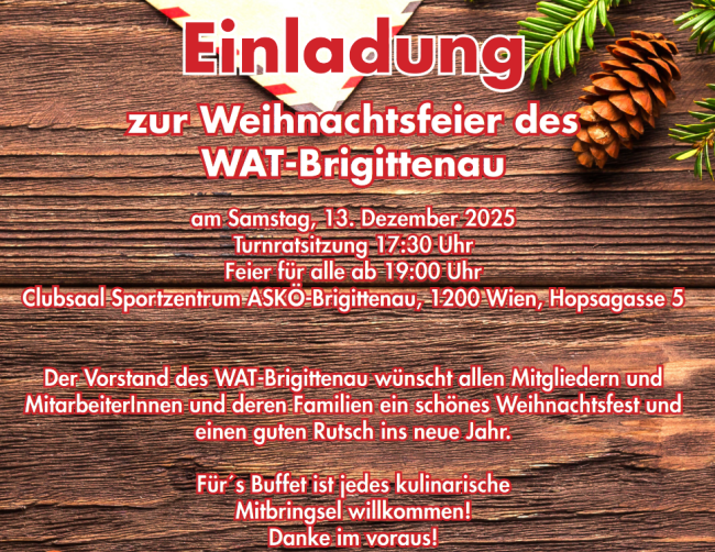 Der Vorstand des WAT-Brigittenau wünscht allen Mitgliedern und MitarbeiterInnen und deren Familien ein schönes Weihnachtsfest und einen guten Rutsch ins neue Jahr.
